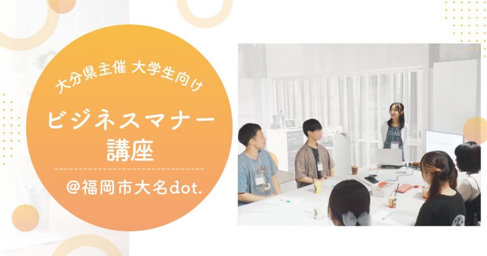 大分県が運営するコワーキングスペース「dot.」にて、大学生を対象にビジネスマナー講座を担当しました。